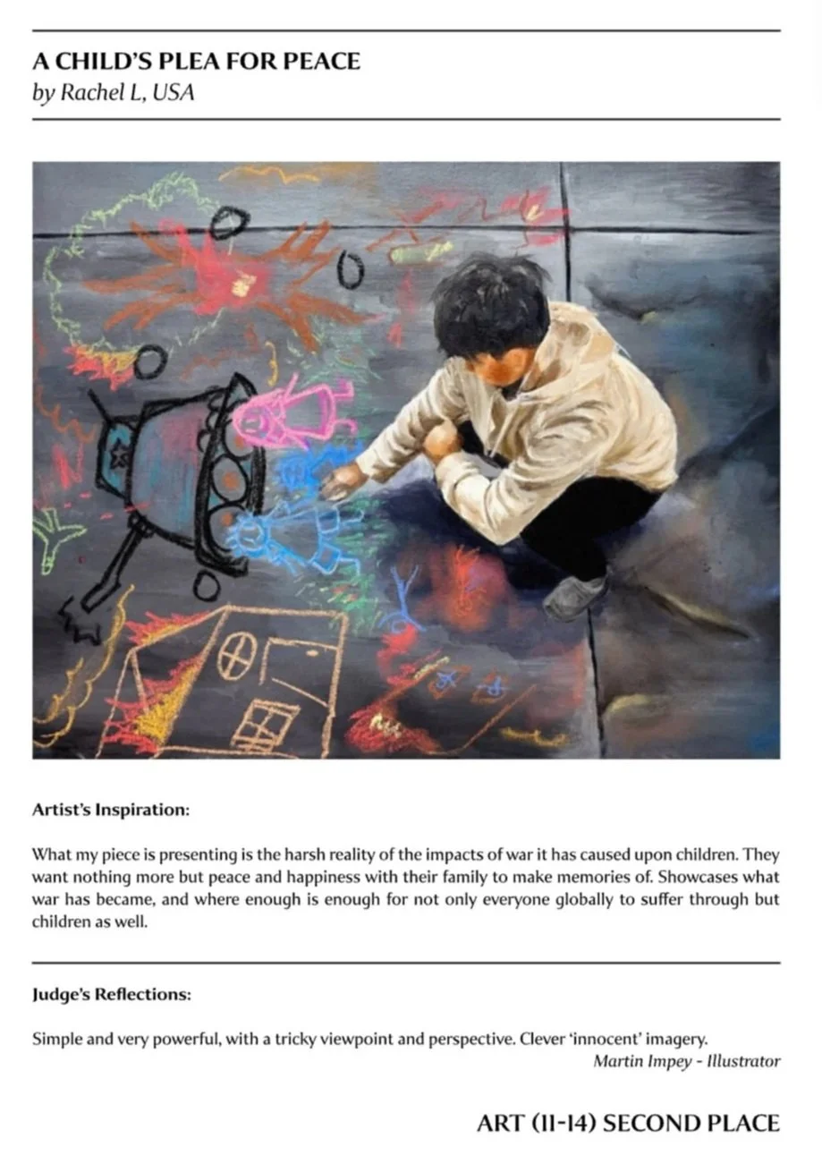 2nd Place: Zhaoyun L., Grade 7, “Vernal Whisper at First Light.”3rd Place: Emilee Z. Grade 8, "Ready for Summer!"